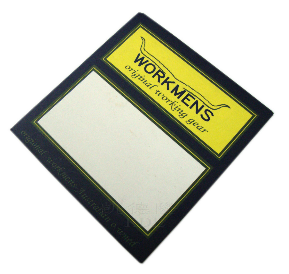 首先吊牌力求简洁、独特,有长条形、圆形、三角形、对折形、插袋式的以及其它特殊造型的,多姿多彩,琳琅满目。其次,从质地上看,吊牌的制作材料大多为纸质,也有塑料的、金属的、橡胶的、皮革的、木质的……近年,还出现了用全息防伪材料制成的新型吊牌。为体现品牌服装的质地精良,与众不同,吊牌材料的选择也极为考究,如使用信用卡材质,经过特殊工艺处理的木质纸等。再次,从工艺上看,采用与信用卡、贵宾卡相同的制作的工艺,印刷精美,做工高档、讲究。最后,从色彩上看,吊牌的色彩与服装的整体包装色彩谐调一致,能够显示服装的品位与格调。因此,服装吊牌的品牌价值是设计与印制的综合体现。