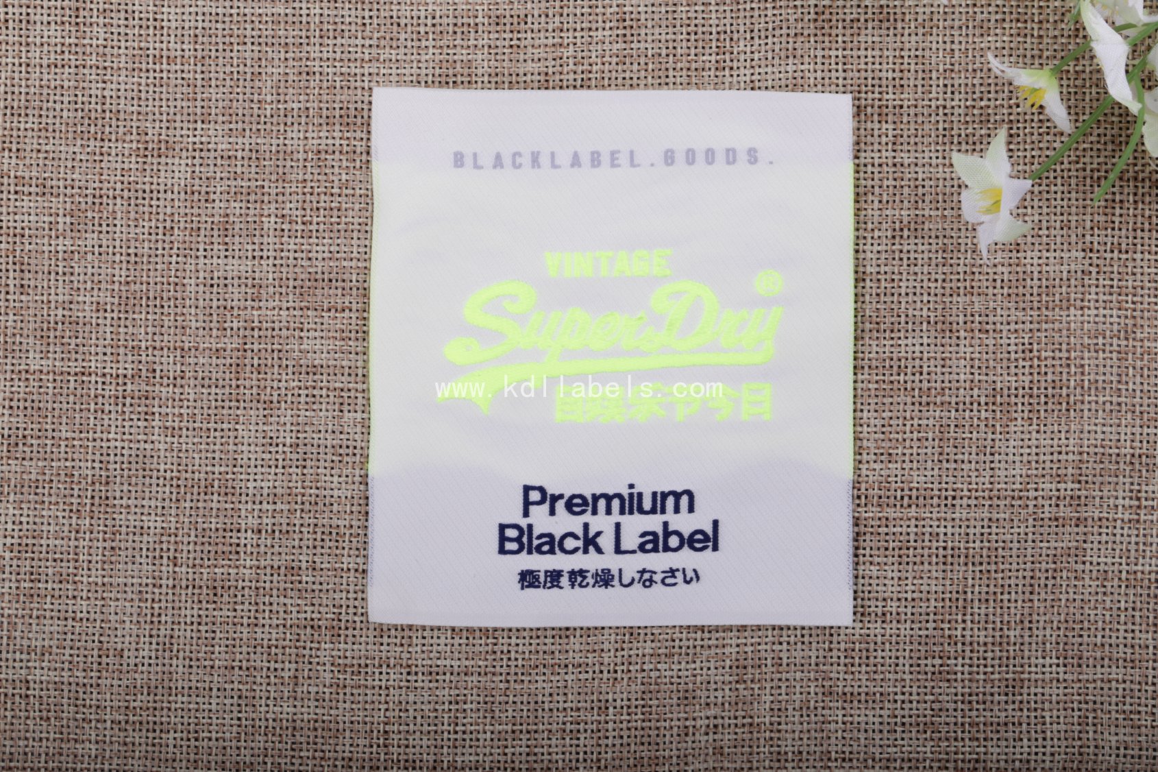 成份唛——重点展示衣物主要原料的组成,例如:全棉、真丝、涤纶、尼龙。